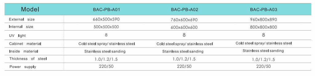 The pass box is made of stainless steel and is smooth and clean. The two doors are interlocked to effectively prevent cross-contamination. Electronic or mechanical interlocking devices are provided and ultraviolet germicidal lamps are provided.