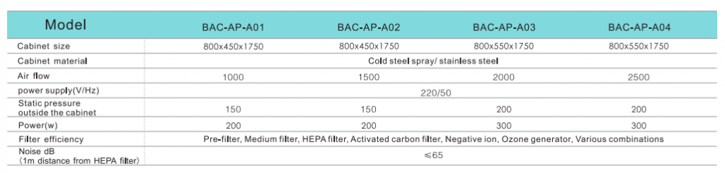 Mainly combined by fans,HEPA filter,prefilter,air outlet and the cabinet.Adopts three level vibration measures and removable brake casters,small vibration and rasy to move.The undemeath of the self-punification equipped with movable wheel,flexible using,to ensure the wind speed of the working area and always in the ideal state.