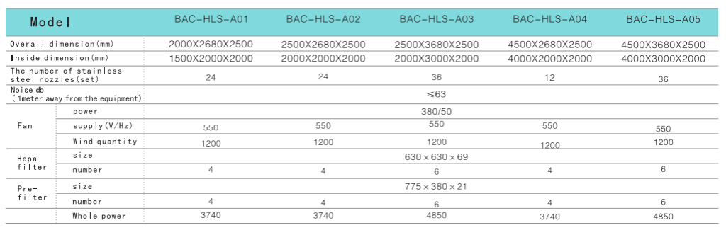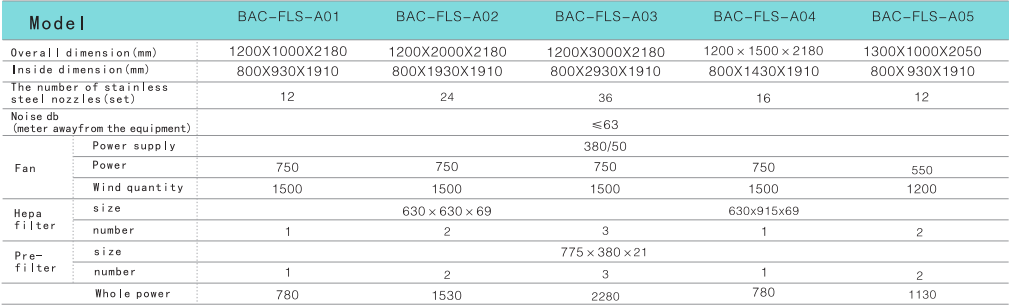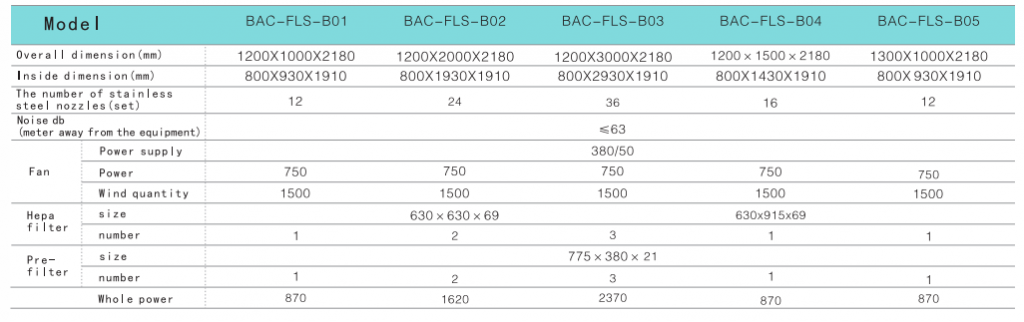 Adopt the filtering system of primary level and advanced level, Efficiency is above 99.99%,Equipped with large air volume and low noise fan to ensure the wind speed at the outlet is above 26m/s.