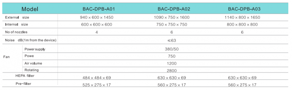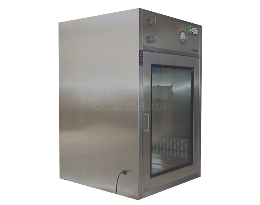 It has the surface material of pass box is cold rolled steel or staninless steel.The inside material of pass box is stainless steel,it can prevent scratches and keeps the pass box flat,neat and wearable.Doors in two sides with machinery or electronic interlock.Adopt mini-pleated HEPA filter,efficiency:99.99%@0.3uM.The wind speed of nozzle above 20m/s.According to production process requirement,it can install efficient sterilization lamp.