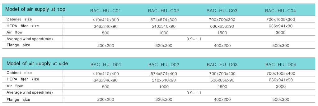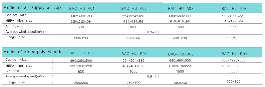 Hepa unit are ideal terminal filtration devices for thousands, tens of thousands, and 100,000 levels of purified air conditioning systems, which can be widely used in the purification air conditioning systems of the medical, health, electronics, and chemical industries. Hepa unit is used as a terminal filter for the reconstruction and construction of a 1000-3 00000 grade cleaning room, and is a key equipment to meet the purification requirements. High efficiency air outlet includes static pressure box, discharge plate, high efficiency filter, the interface with the air pipe can be a top or side connection.